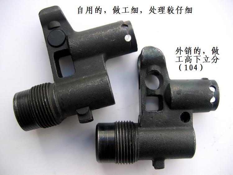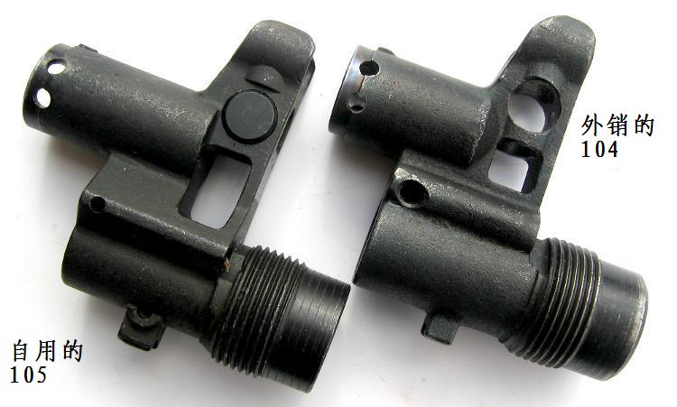 机匣盖没有加强筋,与AK-47通用,虽然AK-104有几批枪是用的AK-74的机匣盖,但AK-105不是,所以如果发现有些AK-105是AK-74的机匣盖,要不就是自己换的,要不就是玩具。