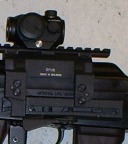 瞄准镜与AK-74一样,但特种部队大多使用红点镜,而且不全是又大又重的国产Kobra,有不少是用进口的,比如EOTech、Aimpoint Micro等。EOTech虽然加高了瞄准基线不少,但使用者基本不抱怨,而Aimpoint Micro因为其瞄准基线只提高了不到两个食指(如果是俄国人差不多是一个大拇指),任何姿势下都能贴腮射击。虽然EOTech反应也不错,但毕竟体积较大,所以老兵都会强行征用所有的Aimpoint Micro,剩下给新兵用EOTech。