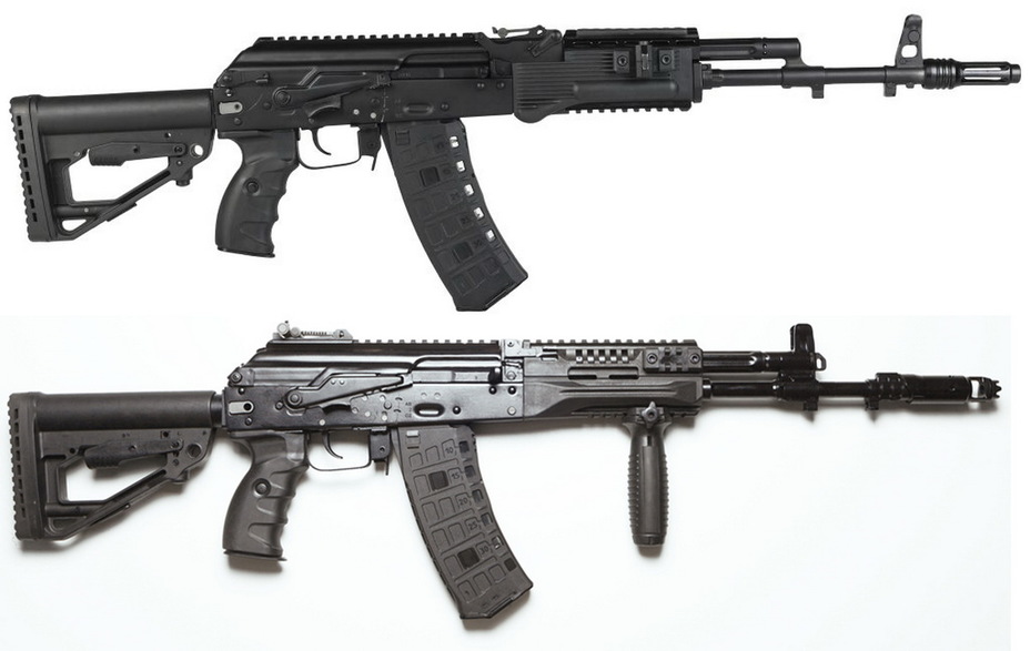 ![]() 2014/15版AK12样枪(左)与新的SAIGA-12霰弹枪(右) |