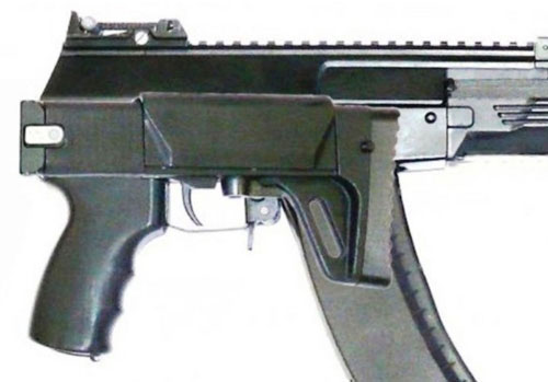 在2012年底的军事展上亮相的AK12,枪托的折叠方向已经改到左侧