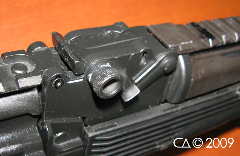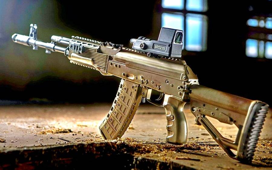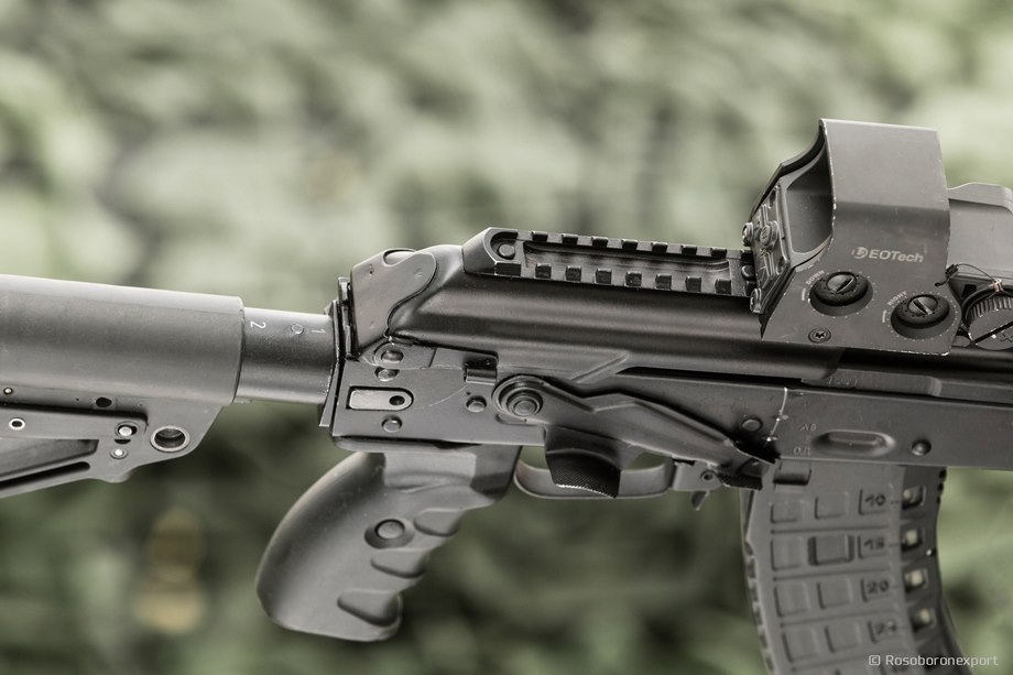 在护木上整合皮卡汀尼导轨的AK100,但仍然要用传统的AK瞄准镜座