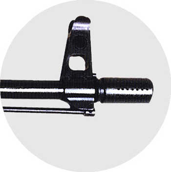 这种试验枪在枪管上方有两个旋转式平衡机械,并通过活塞连杆与枪机框相连。导气室的火药气体会进入平衡旋转机中。当发射时,机械在高压燃气的作用下旋转,产生一个拉力,使枪机框撞击机匣的力量大大减小,从而提高连发射击的稳定性。这是个大胆的尝试,不过确实是很怪异,这种装置也太笨重太复杂,因此没有获得采用。
