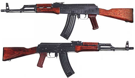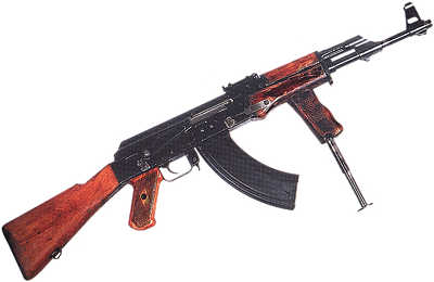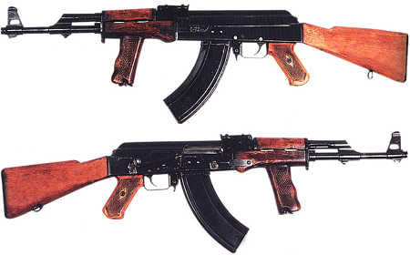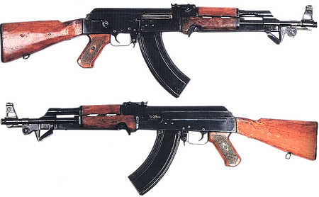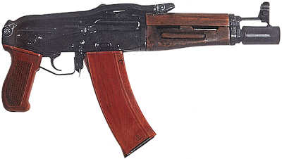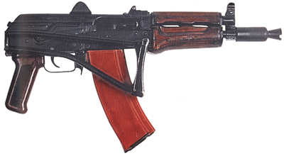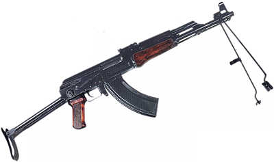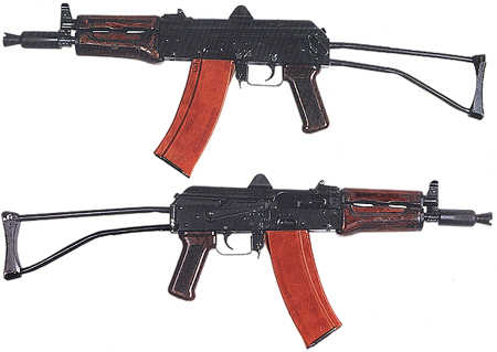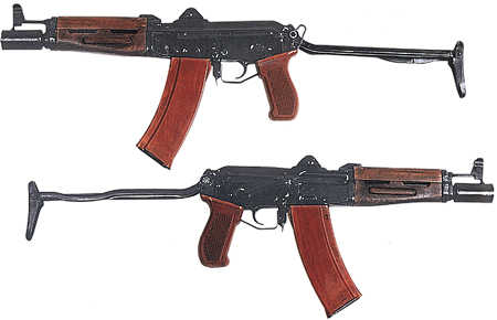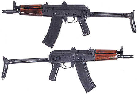 这种突击步枪已经有AKS-74U的特征了,但枪托是下翻折叠式的。