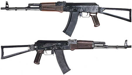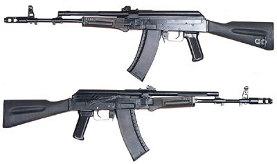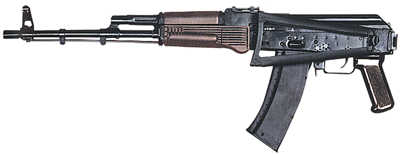 这是AK-74的一个改进试验型,采用了滑动式的枪托,射击时枪管向前冲,以抵消后座能量。另外还采用了新的枪口装置,在原来的基础上改为前后两个敞开的气室,这样擦拭保养时不必从枪管上取下。
