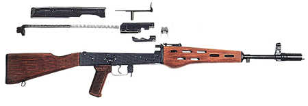 这种狙击步枪是在AKM基础上研制的,有些零部件可以与AKM通用,但只可以单发射击,口径为7.62×54mm R。
