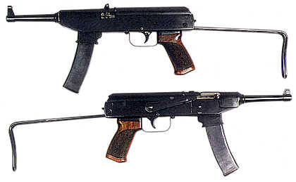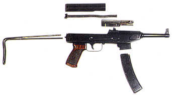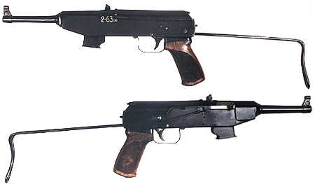 这种冲锋枪是发射7.62×25mm托卡列夫手枪弹,机匣很像AK-46系列,快慢机是直接采用AK-47的1号试验枪的,但却是采用自由后座式枪机。弹壳由机头上的拉壳钩拉出,再由机匣内壁上的抛壳挺抛出。准星有护翼,照门装定有两个距离的射程,分别为100米和200米。有一个金属制的骨架形伸缩枪托,和一个木制的握把。机匣和机匣盖是冲压成形,点焊和铆接。