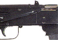 这种实验型冲锋枪采用一个金属制的折叠枪托。照门为100米-200米刻度。采用自由后座枪托,枪管前端有枪口装置。