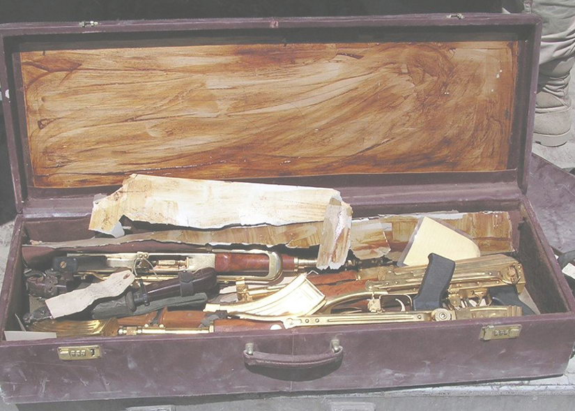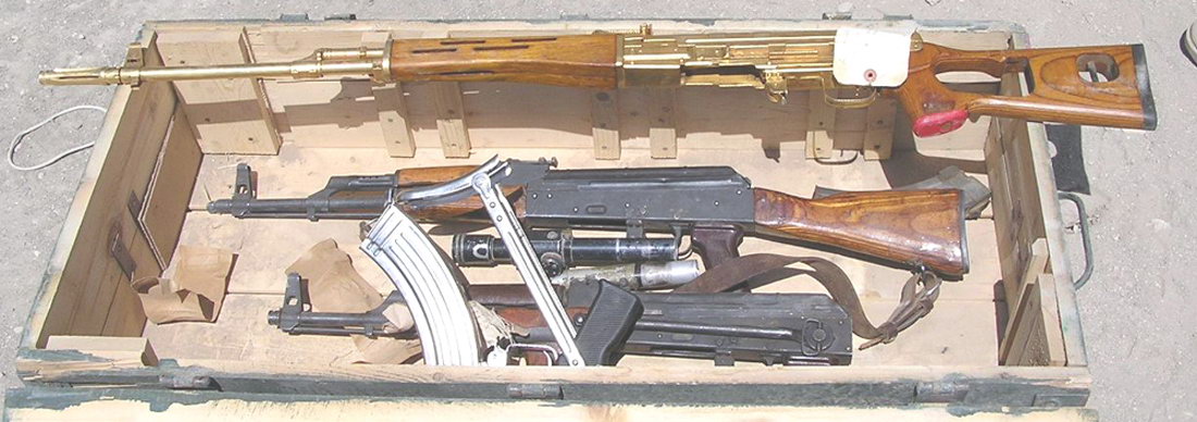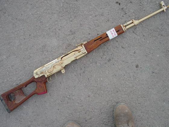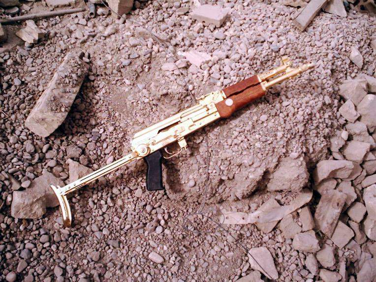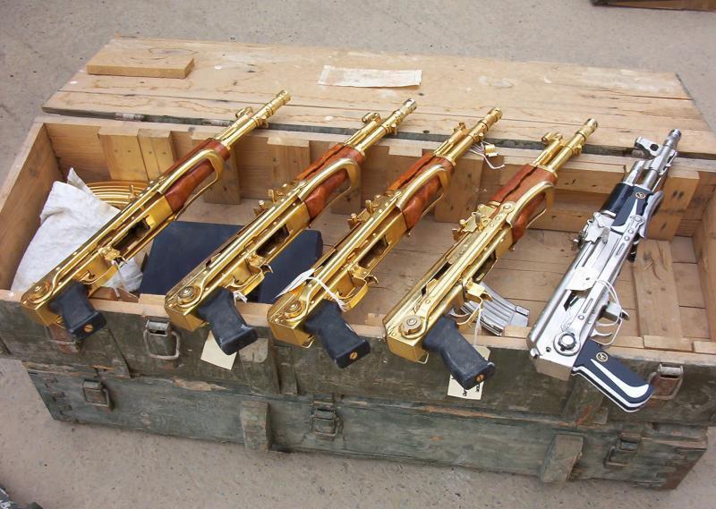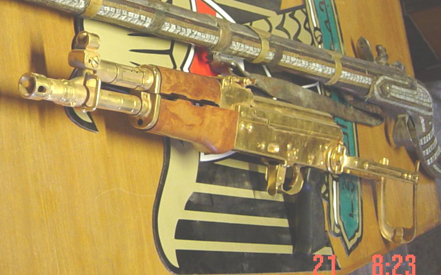 在2003年的伊拉克战争中,最受瞩目的伊拉克武器就是美军在萨达姆行宫中缴获的几把黄金枪(实际上可能是镀金,如果真是黄金造的那根本就不能发射了)。这几把金枪都是伊拉克“阿尔-奎迪沙瓦”武器公司(AL-QADISSIYA ESTABLISHMENTS)为萨达姆制造的变态玩具。“阿尔-奎迪沙瓦”的厂区非常大,占地8平方公里,有3个大门,公司的高层管理人员都是军方的高层官员。这家公司其实没有多少研发能力,其生产的轻武器都是以仿制为主,而其中所有的长枪都是仿制南斯拉夫的AK系列,因为这些枪械的生产设备都是由前南斯拉夫的扎斯塔瓦武器公司提供的。