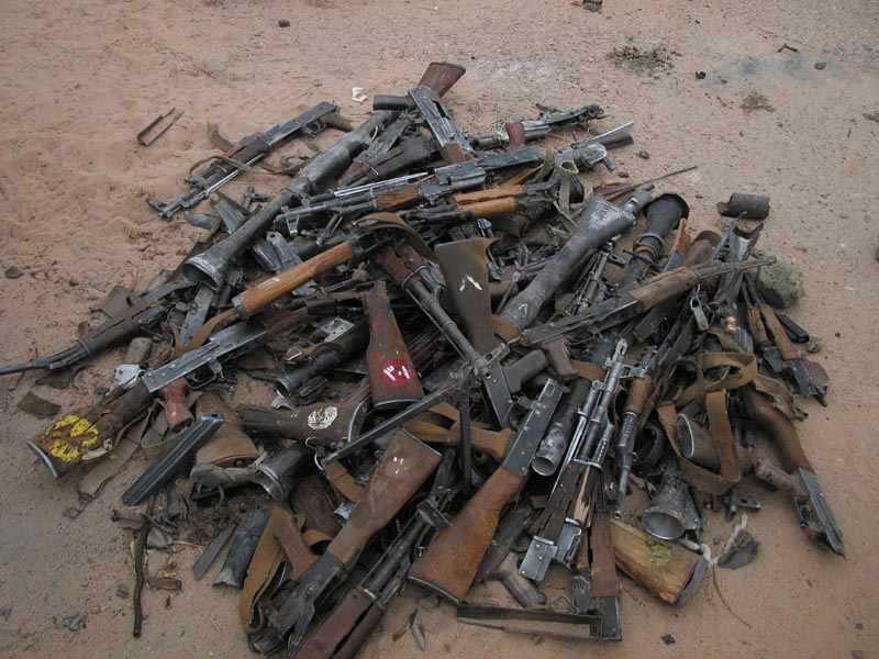 美军在伊拉克准备摧毁的一批缴获武器,里面堆放着Tabuk步枪,RPG-7V以及中国的56式