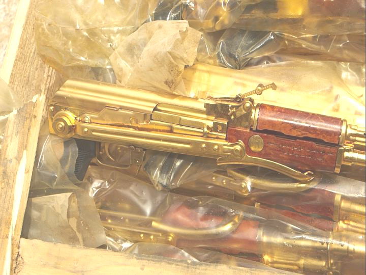 美军在伊拉克萨达姆行宫内缴获的镀金Tabuk短突击型,下面几张图都是这把金枪