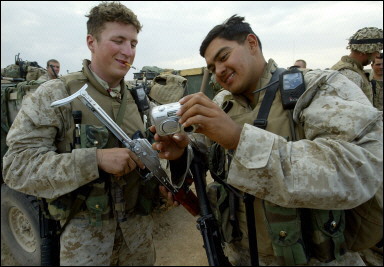 这名美国海军陆战队士兵缴获了一把银色的Tabuk折叠枪托标准型