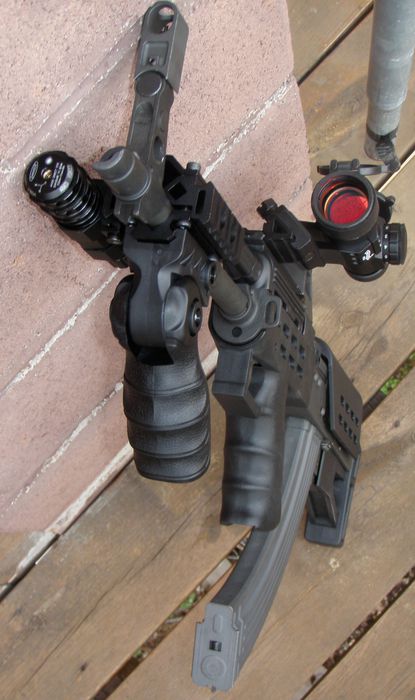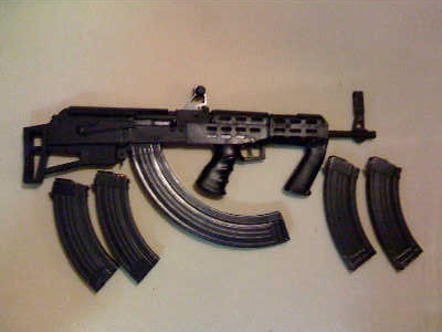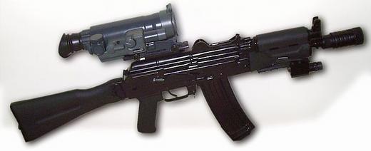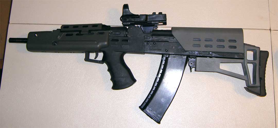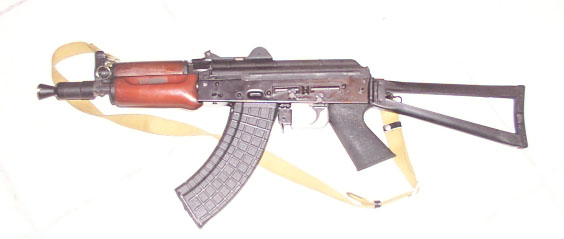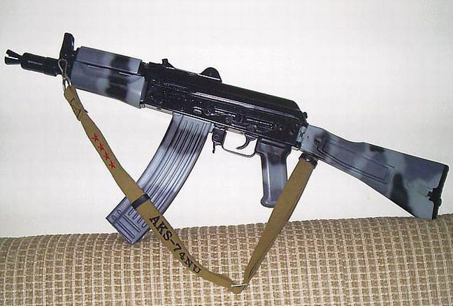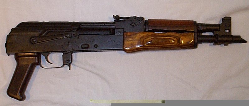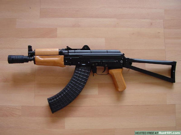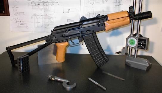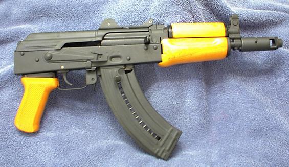 为什么我要打问号呢?因为这些打着AKS-74U的名号来销售的枪都不是正宗的AKS-74U,而是用各种AK步枪改出来的,枪的口径多数为5.56×45mm和7.62×39mm这两种,不过也有一些是5.45×39mm的。“造假”的理由与上述的“K”型AK一样——真货受法律所限不容易进口。由于这些枪大多数都改得面目全非,要辨认出原来是什么型号还真不容易,不过至少可以通过弹匣类型来判断其口径。