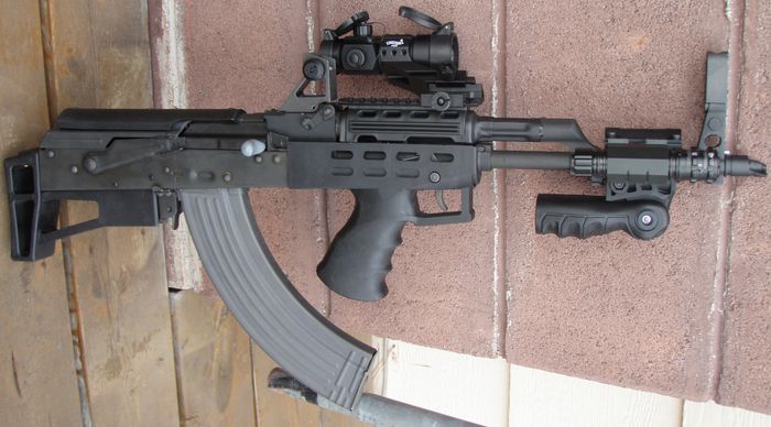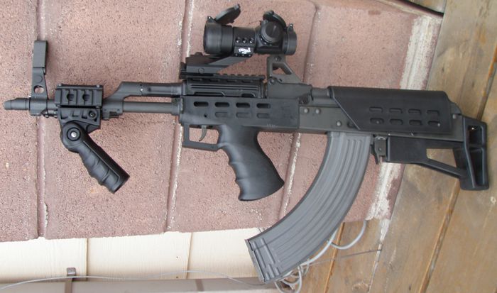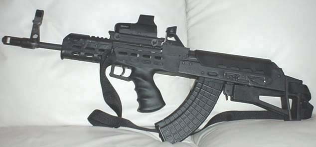 由于美国玩枪的人众多,而且各种口味都有,有些法律虽然限制了某些枪的生产或销售,但在一定范围内的改装却是合法的,再加上有时候有些人会想出一些希奇古怪的主意,因此改装枪就成了美国枪文化的一大特色。对于庞大的AK客户,专事改装枪生意的小工厂(或可以称之为小作坊)当然也不会放过了。这些改装大多数都是缩短长度,或把半自动改为全自动,或把运动步枪式的外型改为突击步枪型,下面仅介绍一些比较容易在网上查到的美国版改装AK。