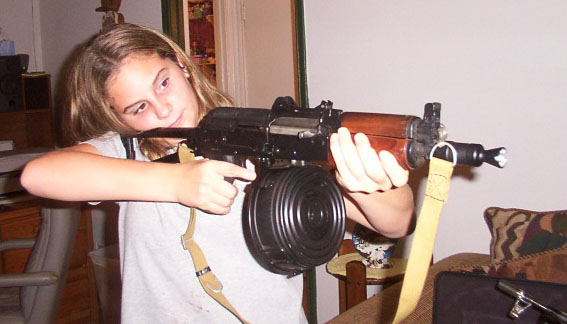 这种名为“AK手枪”的改装AK比上面那些“AKS-74U”更短,主要就是把一些半自动的AK缩短枪管和导气装置,去掉枪托,有时还会增加一个膛口装置而成的。“AK手枪”由于枪管太短,因此枪口焰很大,不过“短小精悍”倒有一定的市场。阿诺德·施瓦辛格的电影《真实谎言》中的一号反角就是使用这种武器,只不过电影中所用的道具被改成了全自动。