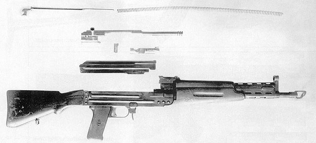 这是苏达耶夫(Sudayev)设计的AS-44式,最初是发射新的7.62×41mm弹。虽然重了些,但在当时苏达耶夫的样枪被认为是很有希望中标的,然而他本人在1946年8月病逝(才34岁)。