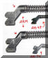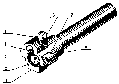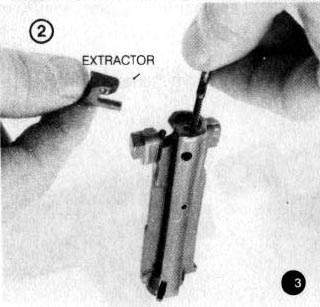 AK的枪机:①进弹凸笋;②弹底窝;③击针;④抽壳钩;⑤开锁工作面;⑥闭锁工作面;⑦左闭锁凸笋;⑧左闭锁支撑面