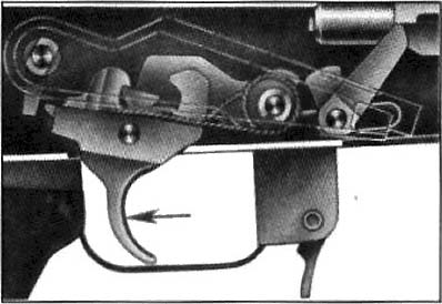 当快慢机装位于半自动位置时,射击第一发弹时,阻铁扣住击锤形成待击状态。扣压扳机后,阻铁解脱击锤,单发阻铁也一起向前回转。如果扣住扳机不放,则击发后的击锤在被机框压倒的同时会被单发阻铁扣住。此时,由于枪机框没有复进到位,不到位保险阻铁传动杆向上抬起,卡笋和击锤卡槽之间有一些间隙。当枪机框复进到位,再次解脱不到位保险阻铁时,击锤被单发阻铁扣住,如果要再次发射,必须先松开扳机,使单发阻铁解脱击锤,击锤随之被击发阻铁扣住再次形成待击状态。