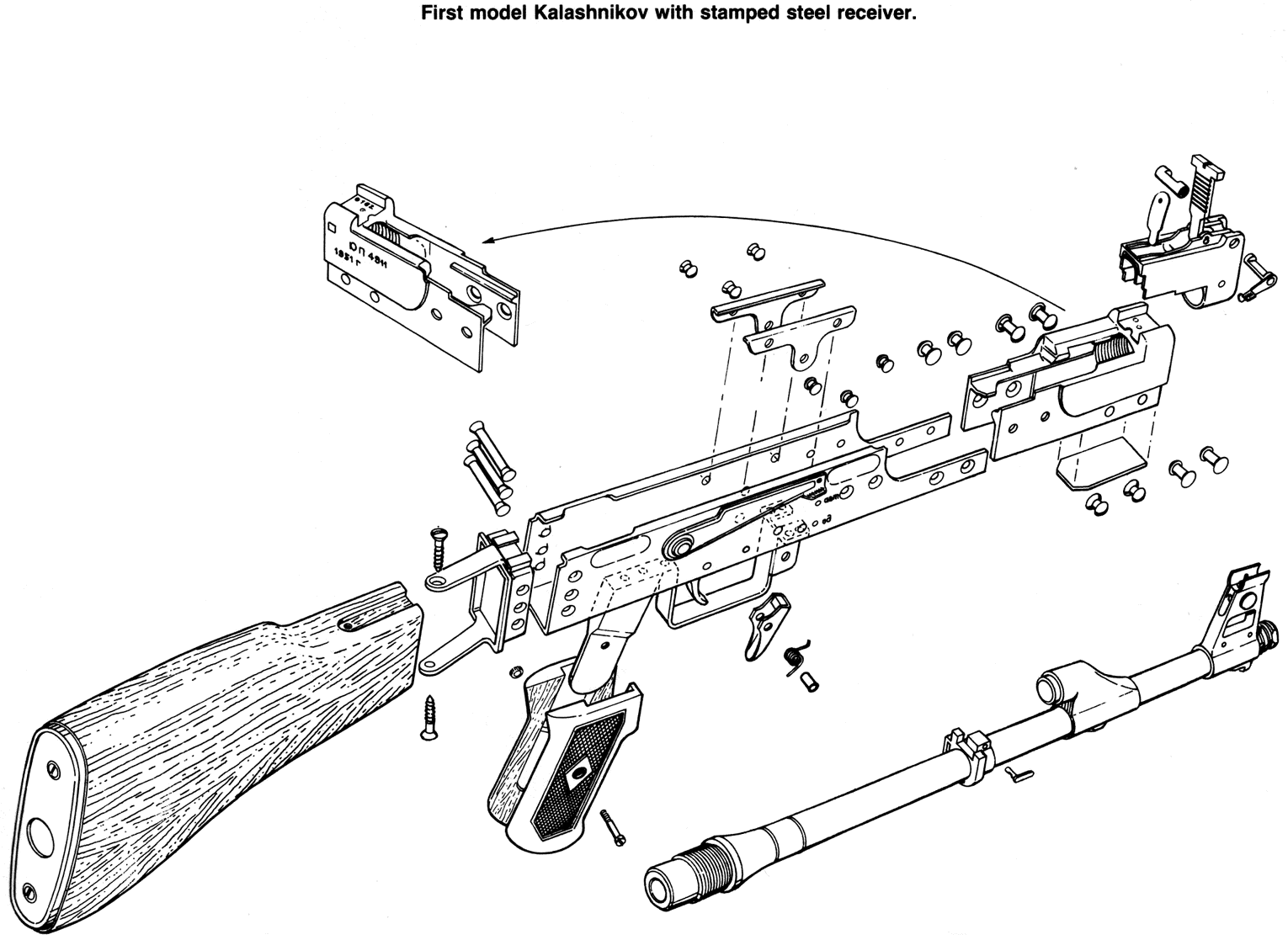| 对比下面两张图可以看出AK-47第1型与第3型机匣的区别,感谢中华温柔扫描的图 | |