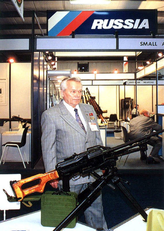 卡拉什尼科夫与他的PKSM在1995年阿布扎比国际防务展上(by Abu-Dhabi)