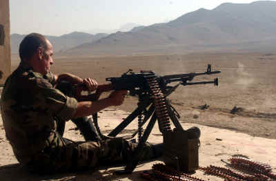 驻阿富汗的法国国际安全部队(ISAF)在试射PKMS