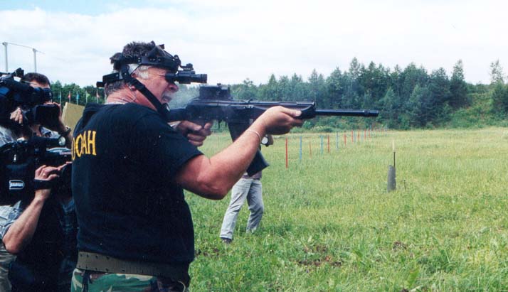 俄罗斯前总理丘诺米丁(VictorChernomyrdin)在1997年射击Saiga-12