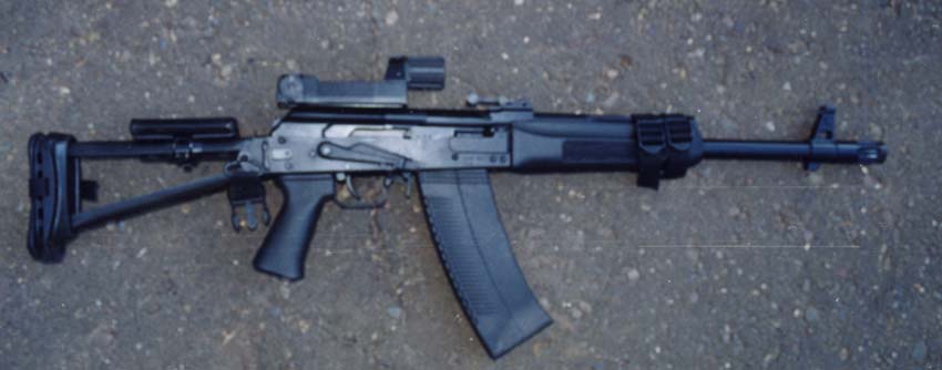 ![]() Saiga-12S,采用折叠枪托和580mm长的枪管 |
