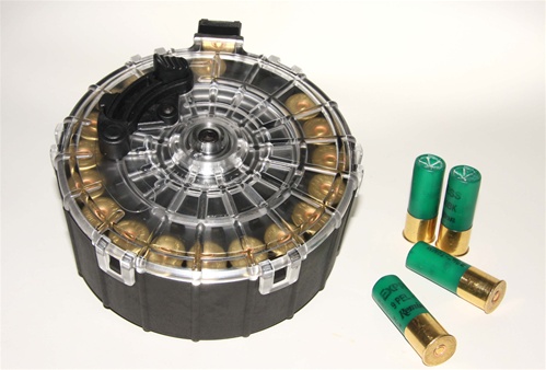 美国那边的厂商所生产的SAIGA-12霰弹枪用的20发弹鼓