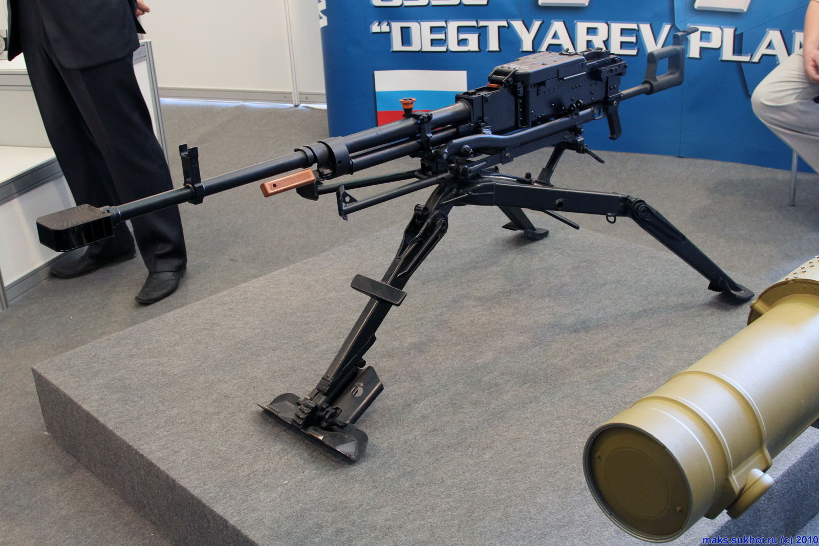 当苏联在1991年秋天解体后,原有的一些兵工厂不再属于俄罗斯,其中一些还是某些武器主要的生产厂,例如NSV机枪的主要生产中心原本位于乌拉尔,在苏联解体后就成了独立的哈萨克斯坦所有,NSV机枪的所有图纸及工艺文件都在这家厂里。其实对NSV的改进要求在1987年就已经提出,但苏联的政治动荡拖延了研制进度,当俄罗斯陆军稳定下来后,他们发现服役的NSV机枪越来越难弄到备件,于是俄军决定借此机会设计一种新的步兵和车辆(主要是坦克)用重机枪。这个设计任务交给了位于科夫罗夫的捷格佳廖夫工厂(ZID)。