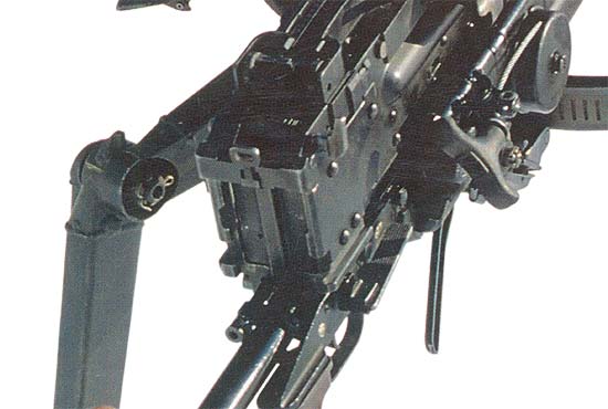 Kord机枪和NSV机枪一样,在枪身上没有控制装置,扳机、待击拉柄等控制装置都在枪架上