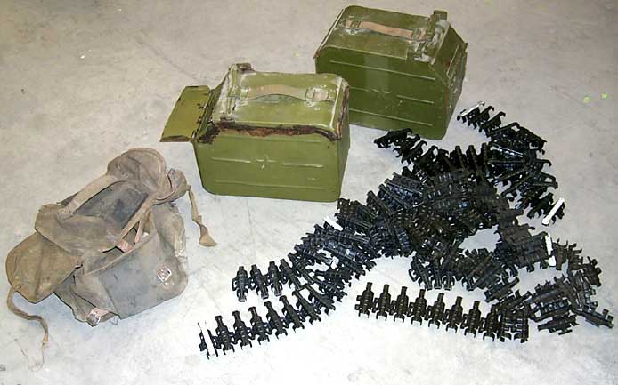 NSV采用不可散的钢弹链,单程供弹。弹链每10发一节,两节之间通过枪弹相连。标准的供弹机构是右侧供弹,但可更换成左侧供弹。带提手的弹链箱可装50发弹链。
