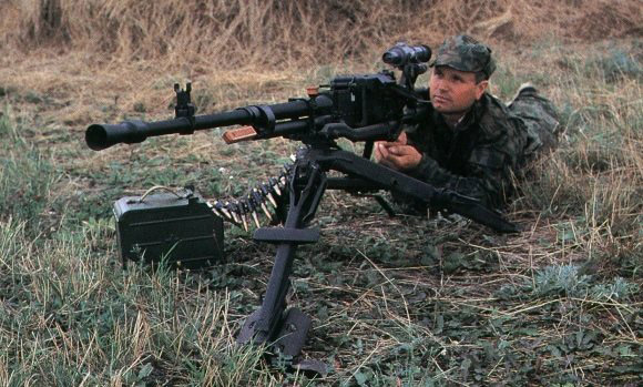 这种看起来好像是NSV机枪的最新改进型,并不是俄罗斯生产的,而是美国ATK公司用塞尔维亚的M87改装后,以02式机枪的名称向美军训练的阿富汗和伊拉克新军推销的