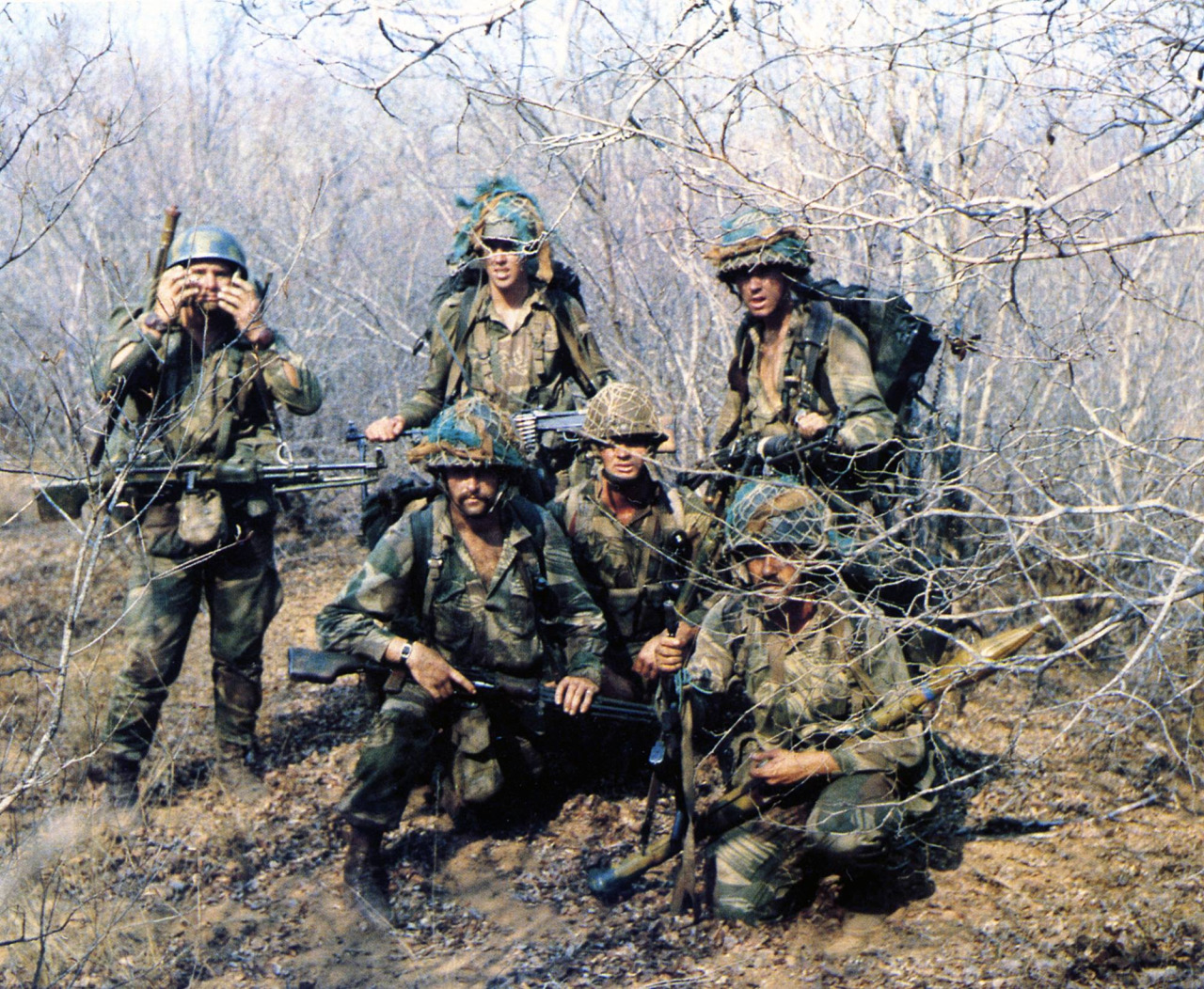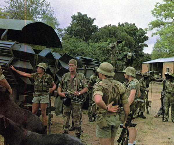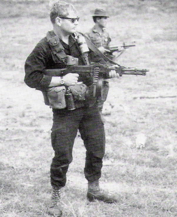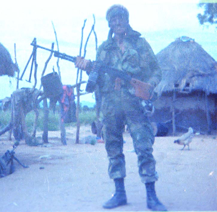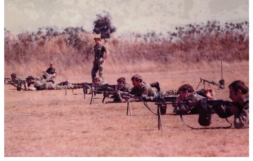 无独有偶,在罗得西亚战争中,也有些南非特种兵把缴获的RPD截短枪管使用。原本南非的制式机枪虽然是FN MAG,但对于一些渗透敌后的侦察部队来说,RPD更轻便,同样的负重下可携带更多的弹药——或者反过来说携带同样的弹药时身上负重更少可以跑得更快;另一方面,这些只有数人的小规模侦察部队会尽量避免与敌人的大部队接触,一旦发生交战,也大多是近距离内的突然遭遇,这种距离下,FN MAG的远射程优势并不能得以发挥,而RPD完全可以满足在这种距离下的交火;当然,还可以直接使用缴获的敌军弹药。所以不少侦察部队都会把缴获的RPD和屯积起来的弹药用于敌后渗透行动。在这种需求下,也有一些人参考了海豹在越战中的“撤退机枪”的做法,把RPD的枪管截短。(事实上,当时就有不少外国雇佣兵参与到罗得西亚战争中,包括不少美国的退役特种兵)