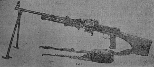 第五型——与RPDM型基本相同,弹链盒托座改为折叠式,平时用作防尘盖,射击时则起固定弹链盒的作用。多节通条装在枪托的附晶筒中。 |
