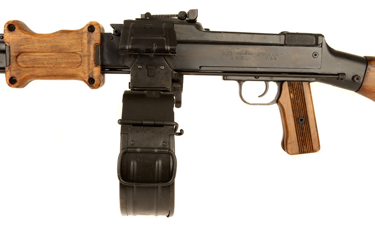 通常配备100发的不可散弹链,为方便携行,弹链一般会绕在一个圆鼓形的弹链盒中,并将弹链盒顶部的连接钩挂到机匣前面的弹链盒托座上(有的枪要先按压防尘盖的弹盒卡笋,使防尘盖打开)。装好弹链盒后,压下机匣底部的卡笋,可防止射击过程中弹链盒向后滑落。