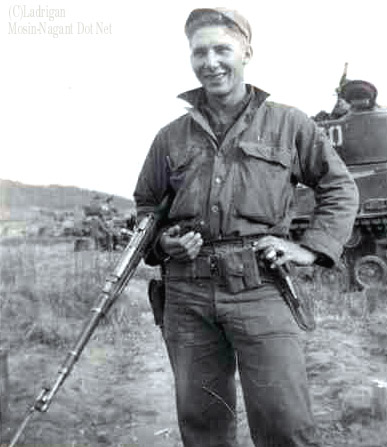 1945年柏林战役时的照片,照片中有一名使用M1944卡宾枪的步枪手和一名DP机枪射手