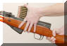 将活塞筒固定栓柄向上转至定位凹槽处,抬起上护木后端,卸下活塞筒和活塞。