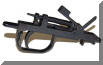 当弹仓中枪弹打光后,托弹簧使托弹板上升至最高位置。托弹板凸齿顶起空仓挂机板,并使其对机匣底面的突出量不小于2.25mm,于是支撑面挡住枪机的推弹凸笋并阻止枪机复进,以便射手及时从上方装弹。