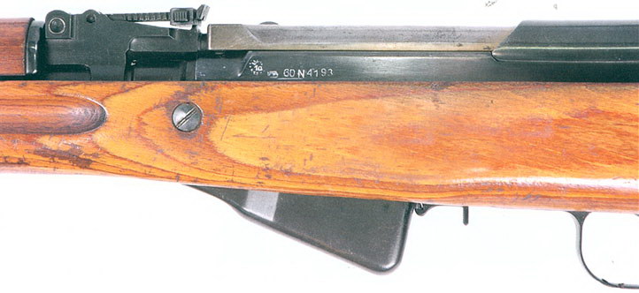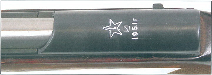 从1955年到1956年,图拉生产的SKS的厂标打在机匣左侧,而不是顶部。
