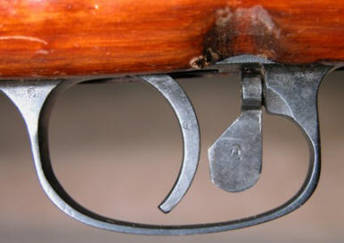 SVT采用击锤式击发机构,手动保险位于板机后面,把它向下扳动时能阻止板机扣动,把它向左上方扳起后就能正常射击。