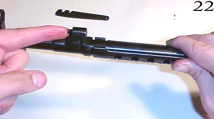 托卡列夫SVT自动步枪是一种导气式操作、弹匣供弹的自动装填步枪。短行程导气活塞位于枪管上方,后坐行程约36mm。导气室连同准星座、刺刀卡笋和枪口制退器一起,构成一个完整的枪口延长段。这样的设计简化了枪管的生产,但枪口延长段本身的制造倒是颇为复杂。导气室前面凸出的是气体调节器,有5个不同的位置,分别标记为1.11.21.31.51.7。可根据天气条件、弹药状况或污垢的积聚程度选择合适的导气量。有一个专门扳钳被用来适合这个五角形的调节器。这个工具也用于拆卸枪口制退器和导气活塞。