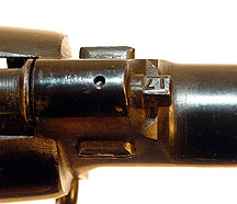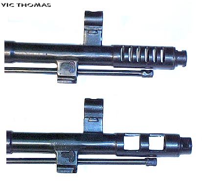 枪口制退器两侧各有6个泄气孔,使部分火药燃气导向侧后方,从而起到降低后坐感和枪口消焰的作用。据说一些早期的枪口制退器有8个开槽。再后来被改为两侧各两个大型泄气孔。