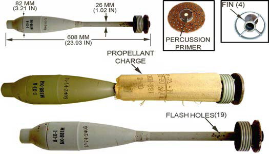 B-10发射的炮弹外形有点像迫击炮弹,只是弹头更圆润一些,尾杆更长一些。尾杆底部固定有环形的尾翼,发射药装在帆布制的管状药包中并套在尾杆上,所以整体看起来就很像迫击炮弹。配套的弹药主要有两种破甲弹和人员杀伤弹两种类型,前苏联生产的破甲弹有BK-881(破甲深度约为250mm均质装甲)及其改进型BK-881M(破甲深度约为350mm均质装甲)两种,初速约为250m/s左右;人员杀伤弹则为O-881高爆/破片杀伤弹(破片杀伤半径可达50米),其初速约为320m/s左右。前两型破甲弹只能用于直射,而人员杀伤弹既可直瞄射击也可间瞄射击。破甲弹之所以不能用于间瞄射击,是因为射击时角度太大,当炮弹击中目标时因为弹体的角度问题导致金属射流不能有效击穿目标的装甲。直瞄射击时,破甲弹的有效射程约400米,人员杀伤弹则为1000米,当以间瞄方式射击时,射程可达4200米。