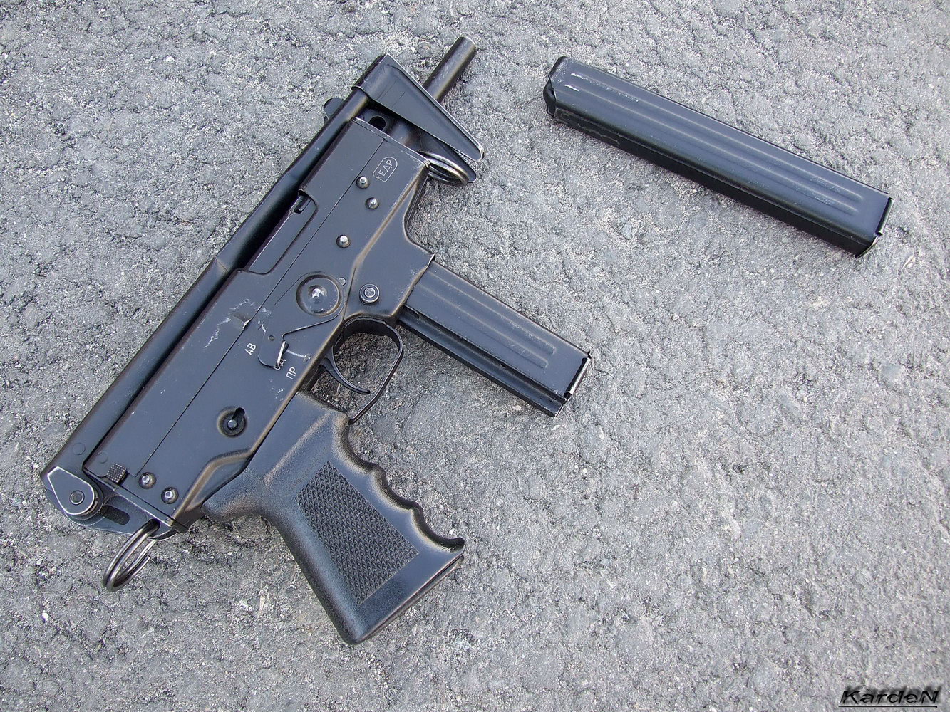 KEDR/KLIN的机匣是由1mm厚的冲压钢板铆接和焊接而成,最后经过了黑色磷酸盐处理。枪尾是机器锻造的,与冲压成形的折叠式金属枪托焊接在一起。冲压而成的金属板机护圈焊接在机匣下面。