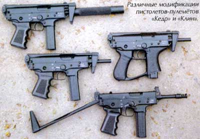 PP-919 Kedr-2(ПП-919 Кедр-2):在1994-1996年间专门为俄罗斯联邦税警研制,发射西方的9×19mm卢格弹,但只生产了3支原型枪。