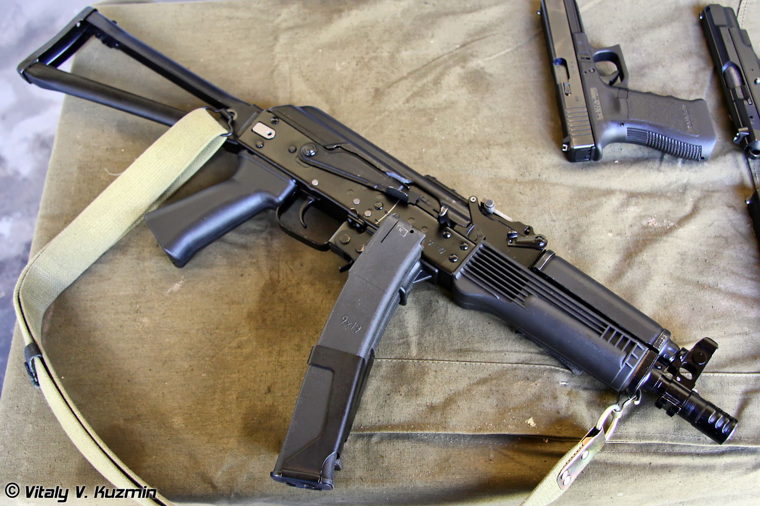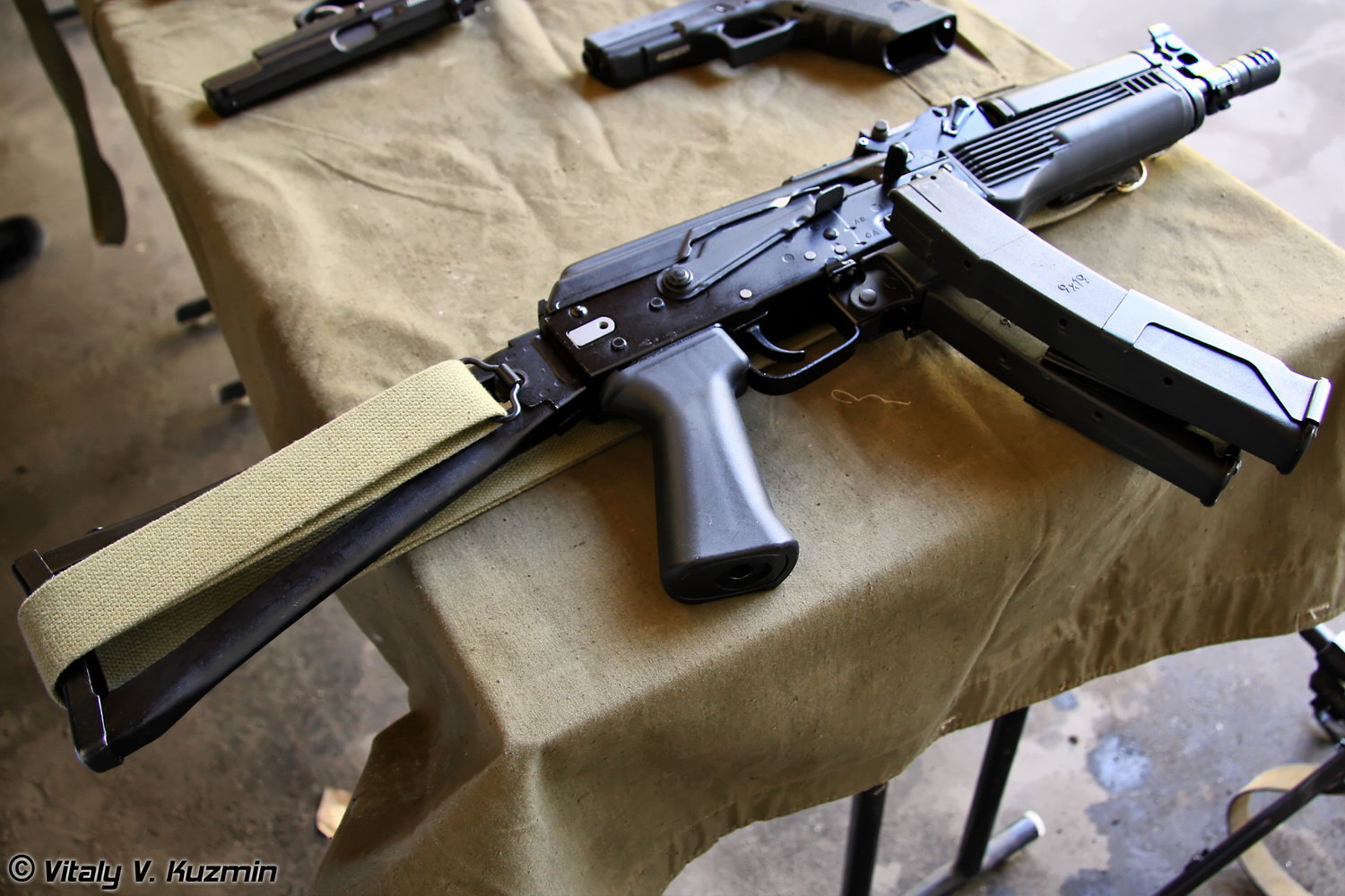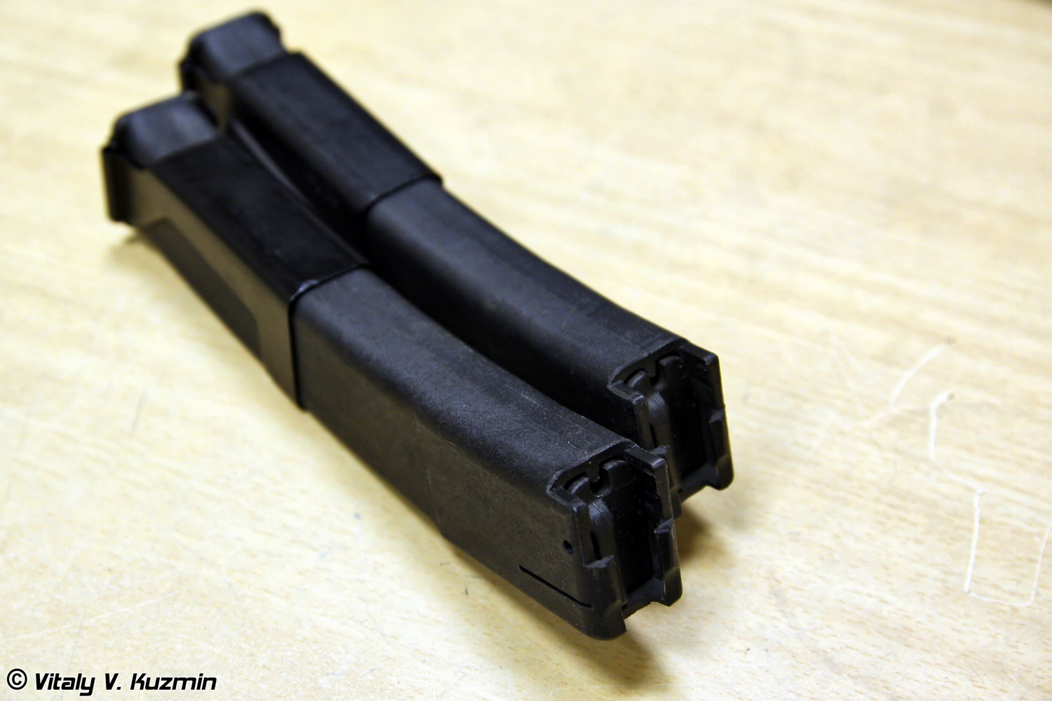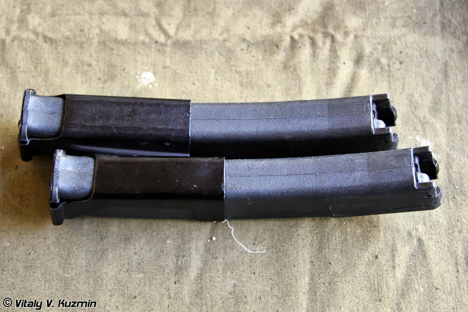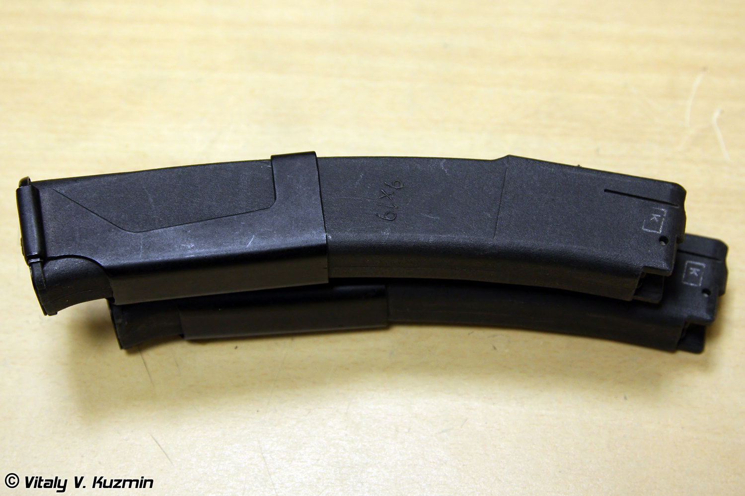 “勇士”冲锋枪与AKS-74U有70%的零件通用,只是把自动原理改为自由式枪机,闭膛待击。由于9mm手枪弹的长度较短,因此机匣较短。弹匣为塑料外壳,直插式固定,因此机匣底增加了一个弹匣座。