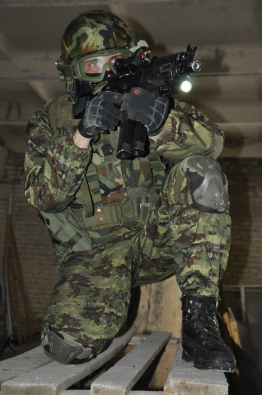 俄罗斯辑毒处下辖特种部队“雷霆”(ГРОМ或GROM)所使用的“勇士”冲锋枪改装了M4式的伸缩枪托