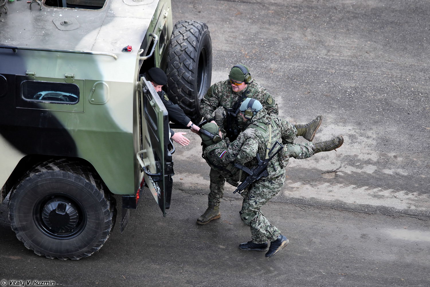 俄罗斯2013年国际军警装备展上进行表演的内务部特种部队所装备的PP19-1