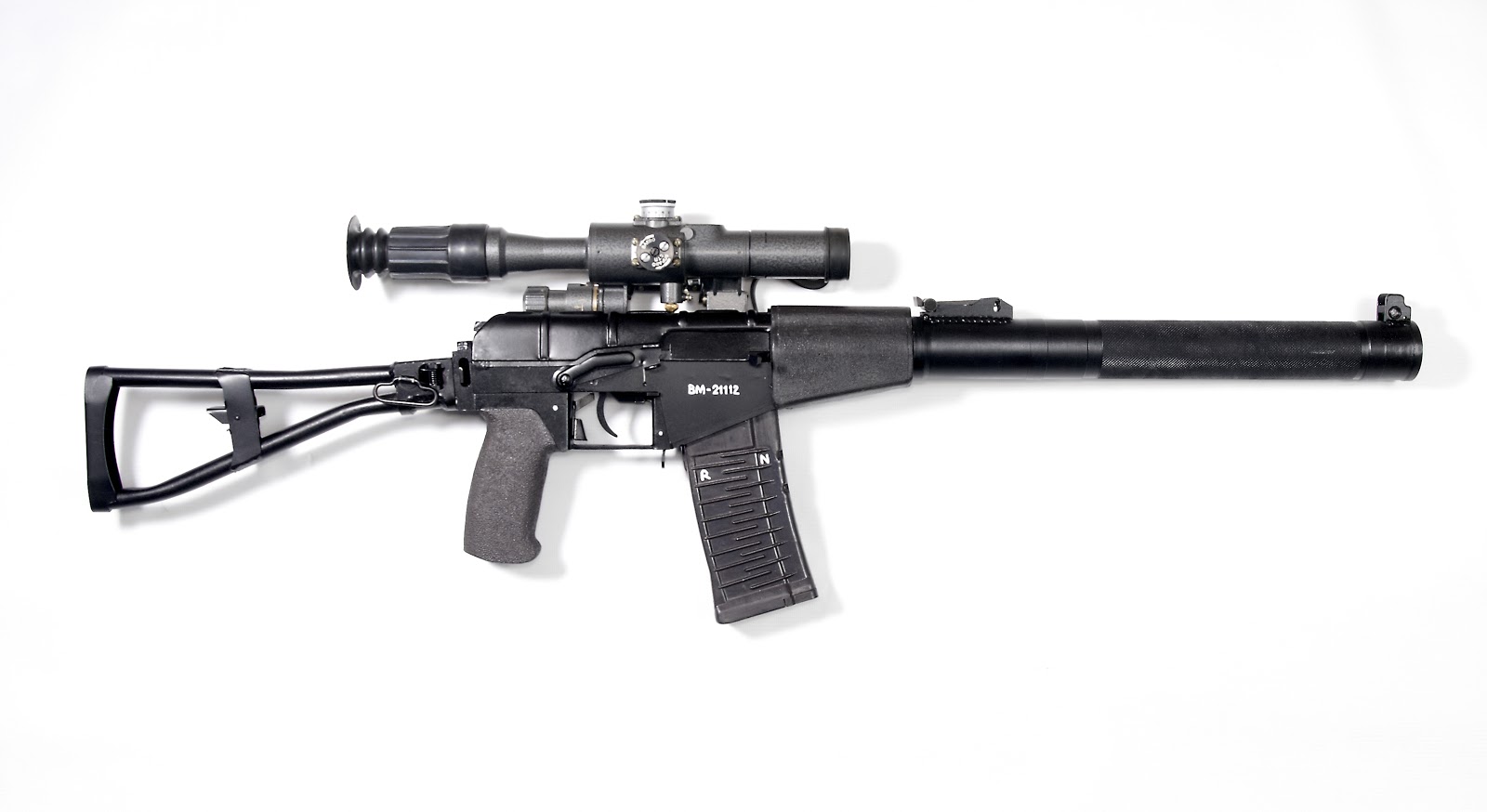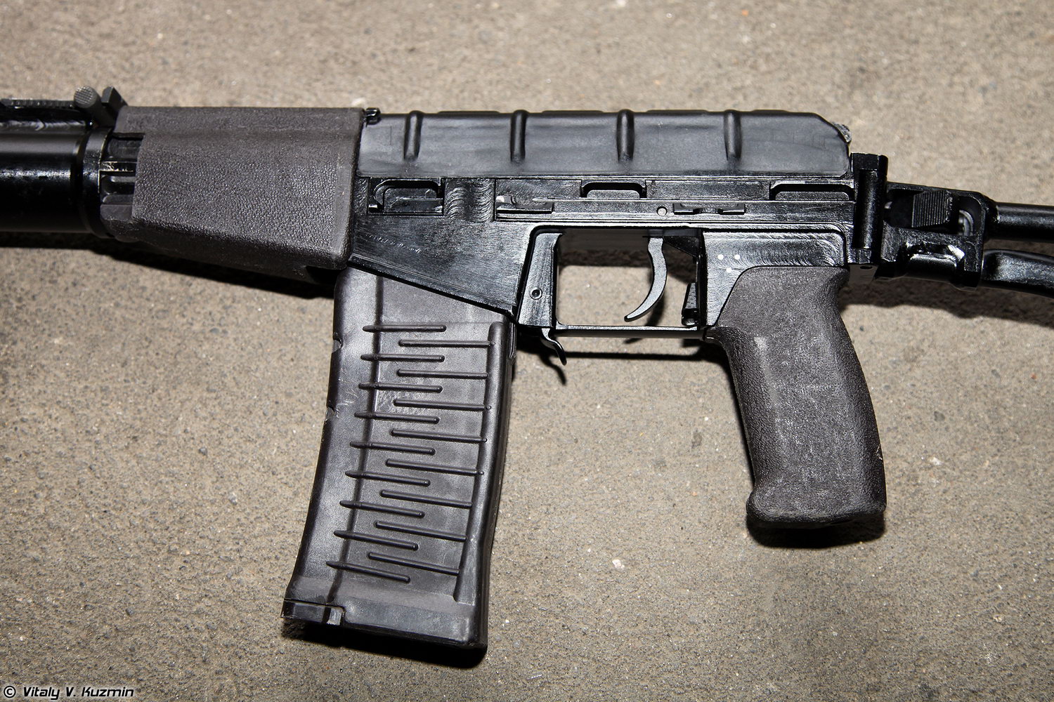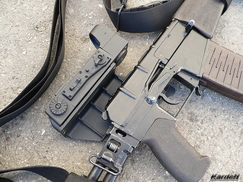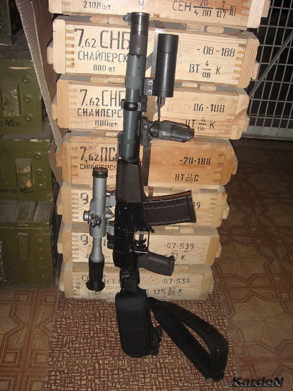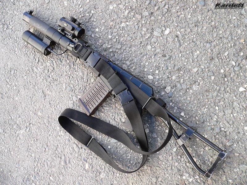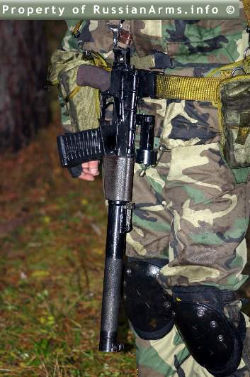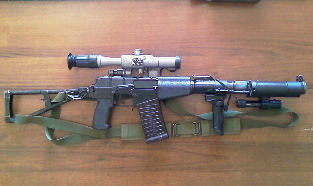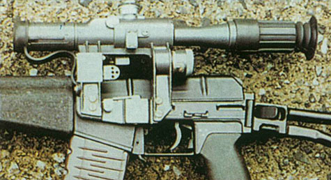 ![]() ![]() AS VAL的机械瞄具安装在消声器上 |