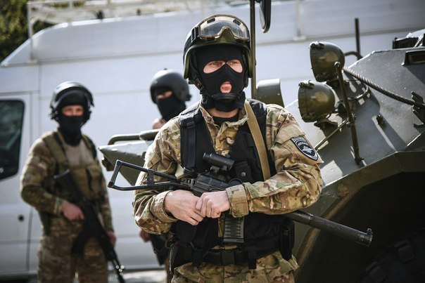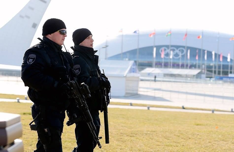 2014年索契冬奥会前夕,在街头巡逻的俄罗斯警察,图中右边的警察携带的是折叠了枪托的AS VAL
