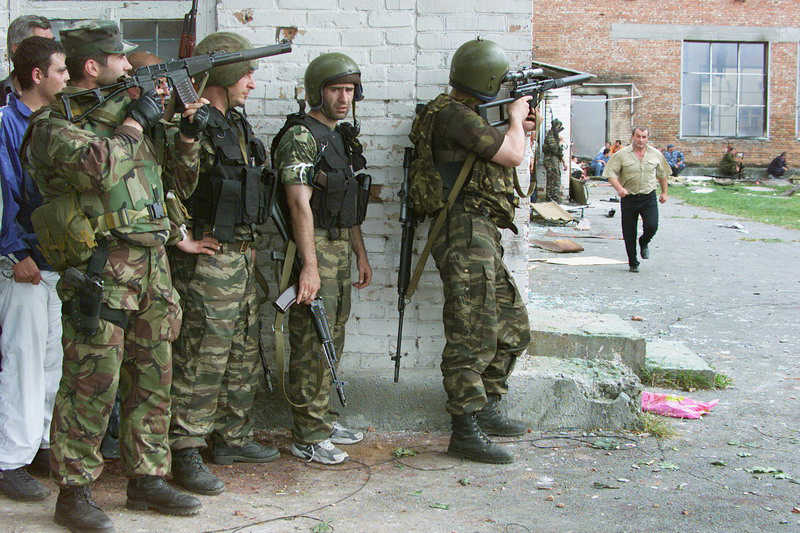 在别斯兰市学校人质事件中的俄罗斯特种部队,照片中左边有一支AS,右边有一支VSK-94